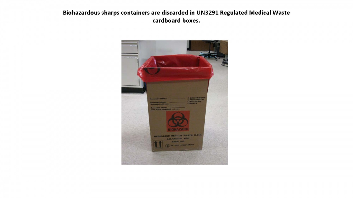 - Sharps container must be disposed as biological waste (filled containers should be locked and placed in the biohazard waste box) PDF